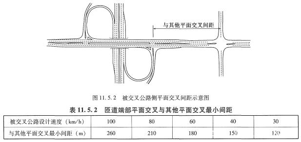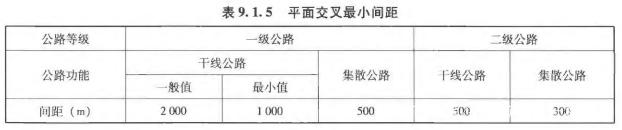 《標(biāo)準(zhǔn)》9.1.5條,針對不同功能定位、不同技術(shù)等級的公路平面交叉最小間距,應(yīng)不小于表中規(guī)定值。