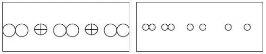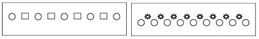 比如,盆花放置時利用變葉木和散尾葵兩種質地、顏色、高度等完全不相近的盆栽間隔擺放,形成既有分割空間作用還不至于隔斷空間、增強通透性的效果,還能打破一種盆栽的單調、呆板的氛圍。圖2表示間隔韻律。左圖表示中間間隔另一種不同的植物,結合連續(xù)韻律表現。右圖表示同種植物間間隔不同的植物并且間隔距離漸變,形成間隔韻律,結合漸變韻律共同表現。