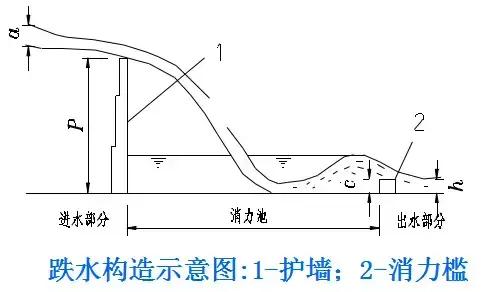 跌水構(gòu)造:單級和多級之分,溝底有等寬與變寬之別?;緲?gòu)造可分為進水口、消力池和出水口三個部分。