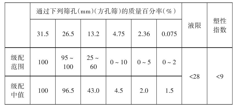 基于施工現(xiàn)場石料調(diào)研結(jié)果,結(jié)合已有工程實踐經(jīng)驗,初步得到本項目的級配設(shè)計,如表1所示。