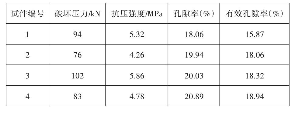 就上述試驗結(jié)果而言,本項目所用級配設(shè)計能夠在保證混合料孔隙率達到15.93%~18.97%水平的同時,使得抗壓強度達到4.24~5.94MPa的范圍,因此能夠基本滿足預(yù)期的力學(xué)及物理要求。