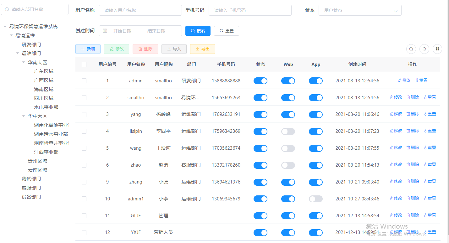 管理員可以通過用戶模塊管理各個部門的用戶,添加用戶角色,并設(shè)置權(quán)限和數(shù)據(jù)權(quán)限。還可進行部門管理。