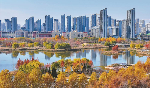 安徽省亳州市不斷推進(jìn)生態(tài)城市建設(shè),圖為高新區(qū)鳳尾公園色彩斑斕,景色如畫。劉勤利 攝