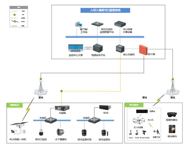 對排污口排放的受納水體采用排污監(jiān)測儀進行水質(zhì)在線監(jiān)測。通過 4 G 太陽能攝像機、水下攝像機等設(shè)備全天候?qū)崟r監(jiān)測排污口排污狀況,發(fā)現(xiàn)違規(guī)事件及時告警。通過無人機對河道情況進行立體化巡查,并可搭載高光譜水質(zhì)掛載,實現(xiàn)河道水質(zhì)指標(biāo)反演。通過 單兵 、觀測熱像儀等設(shè)備 , 進行排口移動巡查、取證記錄 。